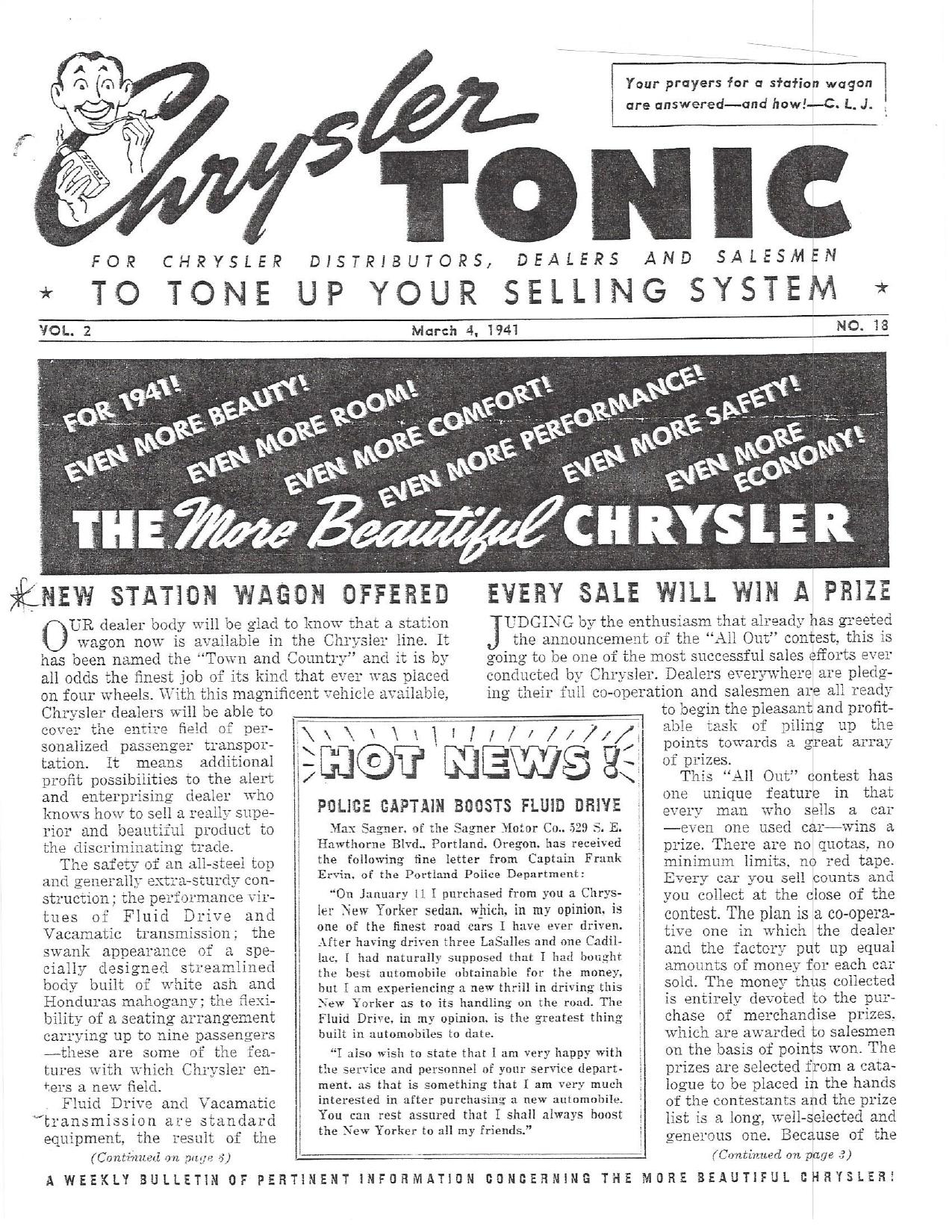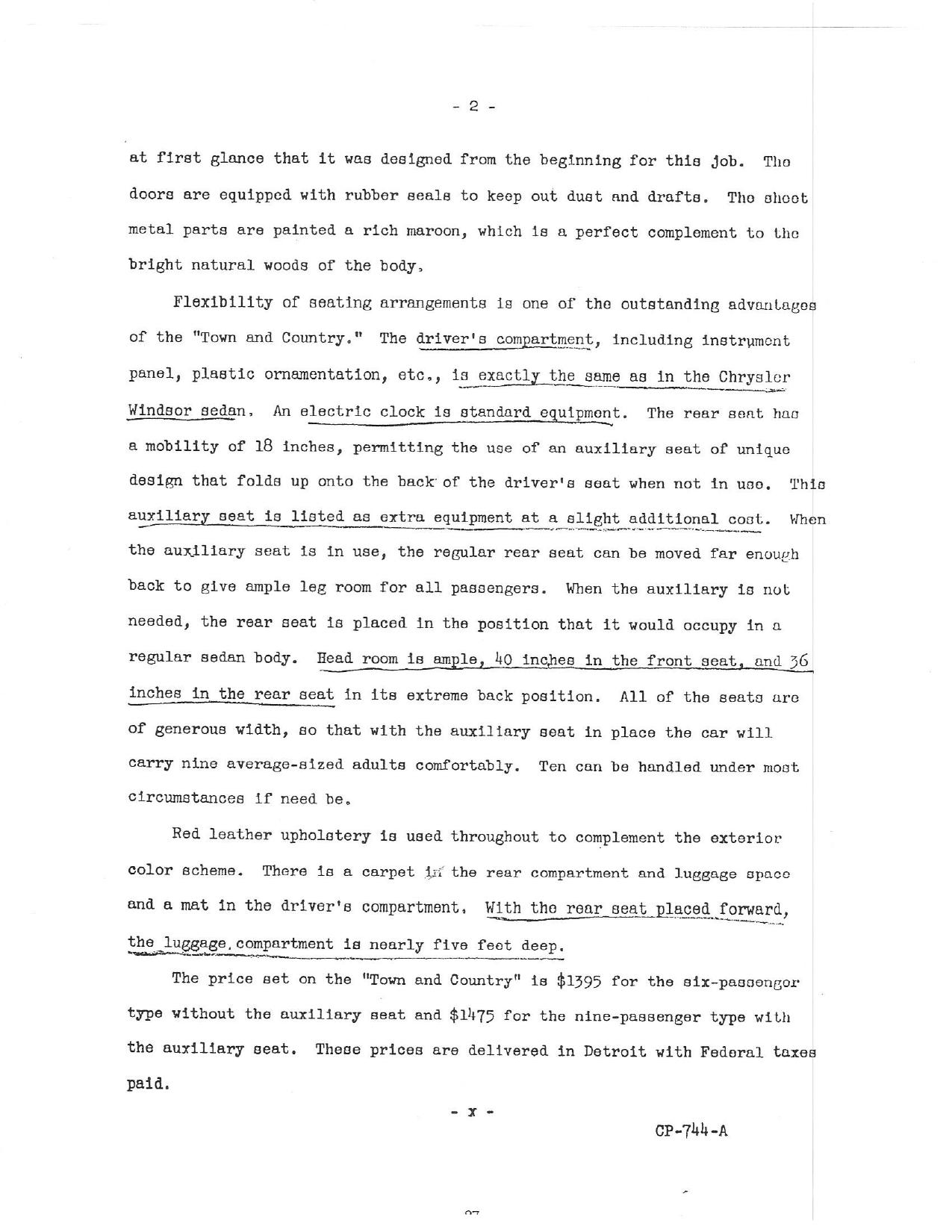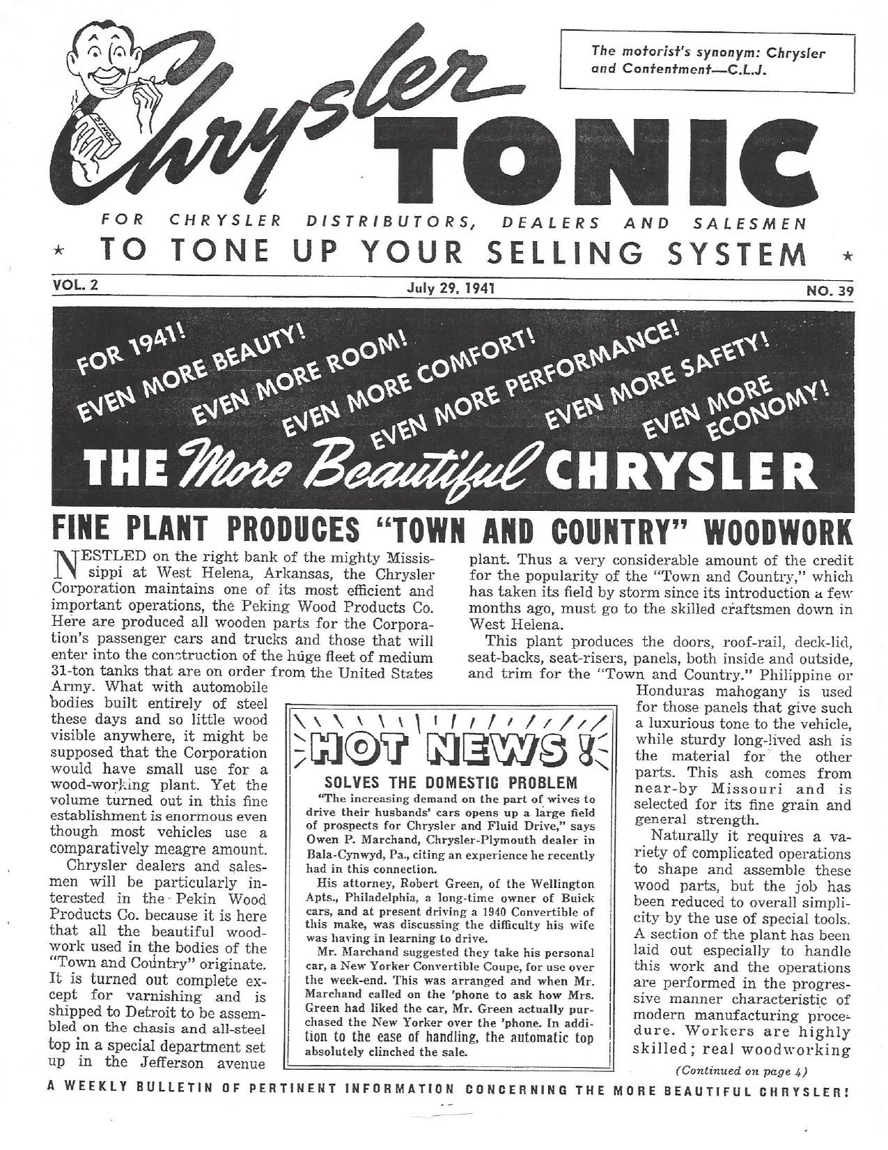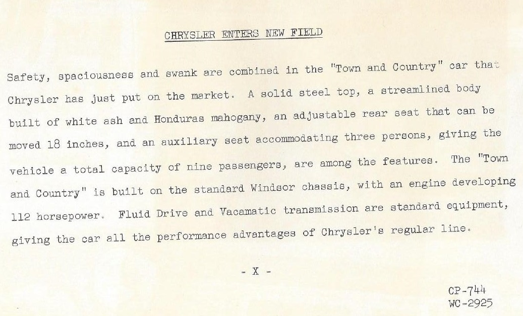 1950 CHRYSLER T&C AD PROMOTING THE NEW FOUR-WHEEL AIRCRAFT TYPE DISC BRAKES (NEW TO THE CAR INDUSTRY)